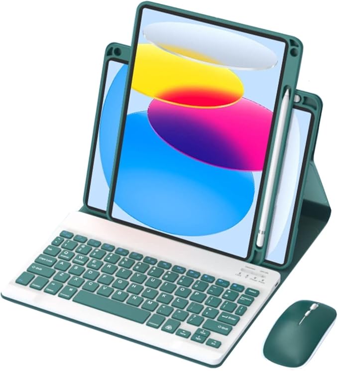 360度回転 iPad Air 11 インチ M2/ iPad Air4 iPad Air5 キーボードケース マウス付き 縦置き対応 iPad Pro 11 インチ 第 4 3 2 1 世代 キーボード カバー マグネット 分離式 多機能 可愛い (深緑)