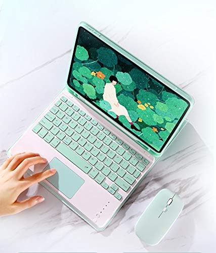 適用 iPad 5 6 Air2 キーボードケース ペン収納 タッチパッド搭載 軽量 薄型 おしゃれ 人気 iPad第6 5世代 9.7インチ Bluetoothキーボード 手帳型 脱着式 可愛い, 深緑