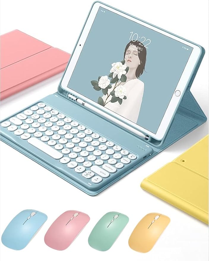 ワイヤレスマウス付き iPad6 iPad5 iPad Air2 Pro 9.7 キーボードケース カラフル 丸型キー レディース 可愛い iPad 第6世代 第5世代 アイパッド6 9.7インチ キーボードカバー bluetooth カラーキーボード