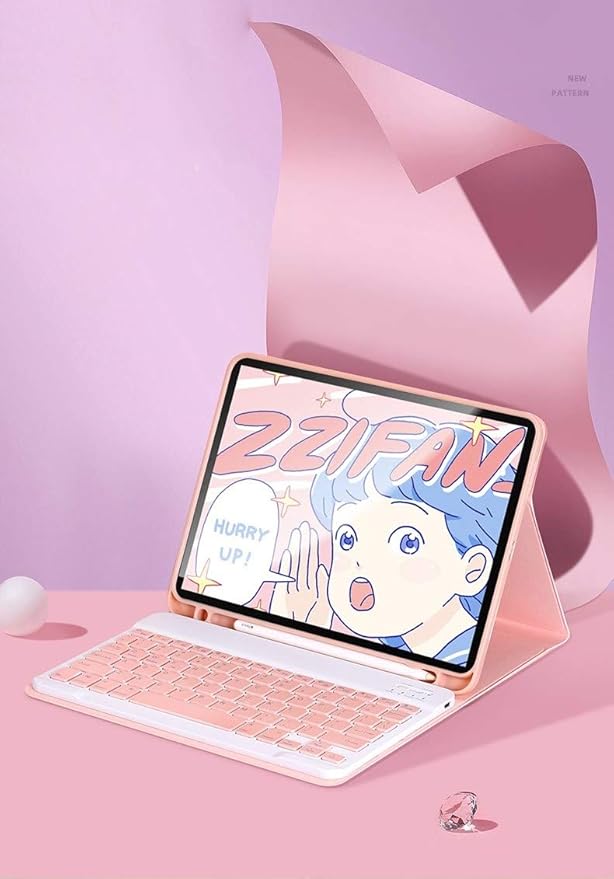 【取り外し可能キーボード】ワイヤレスBluetoothキーボードはマグネットで保護カバーに接続されており、柔軟で取り外しやすく、持ち運びに便利です。