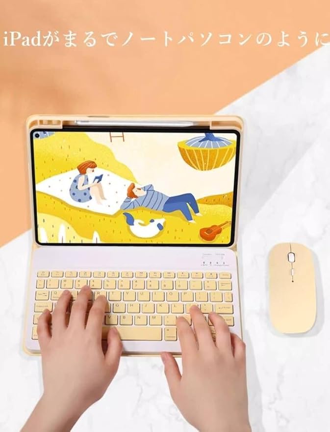★ 【かわいいデザイン】可愛いカラーキーボード+保護カバー+マウスのセットで機能性がよく、iPadはもっと便利にします、おしゃれかわいい人気デザイン、女性、女の子、学生やビジネスに最適なキーボードケース。