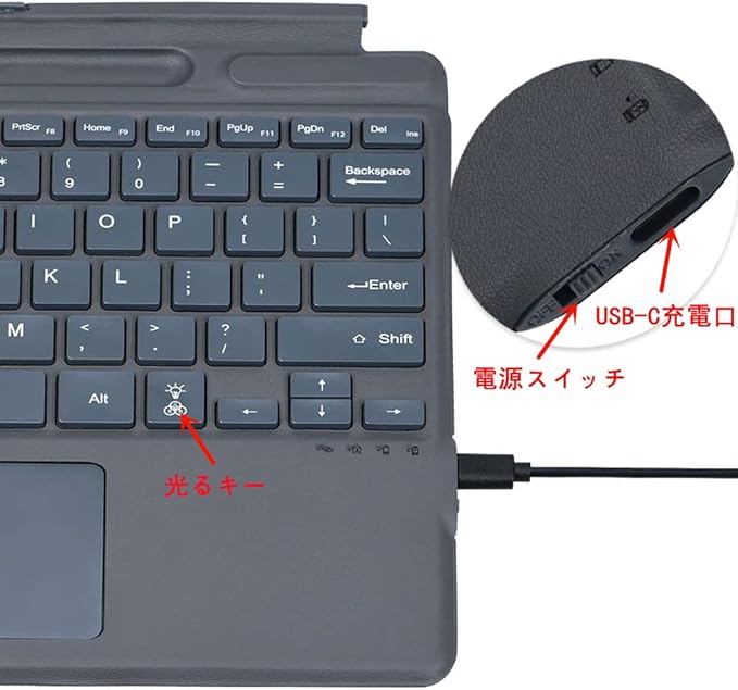 「WASHODO」 Surface pro x/8 bluetooth キーボード 7色 LED発光式 取付簡単 無線式 バッテリー内蔵 usb充電式 静音 ワイヤレスキーボード 90日品質保証
