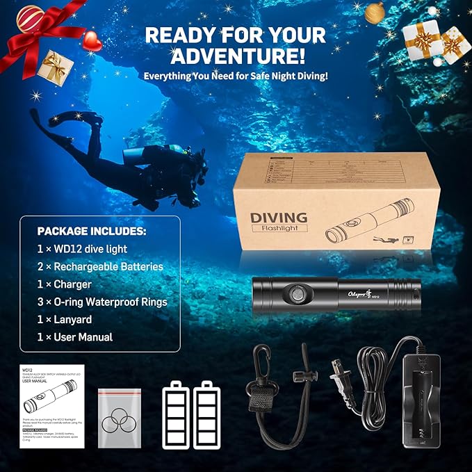WD12 IPX8 Max 1050ルーメン ダイビングライト 水中ライト プロ仕様超高輝度 水中懐中電灯 IP68防水 水中100メートル使用可能