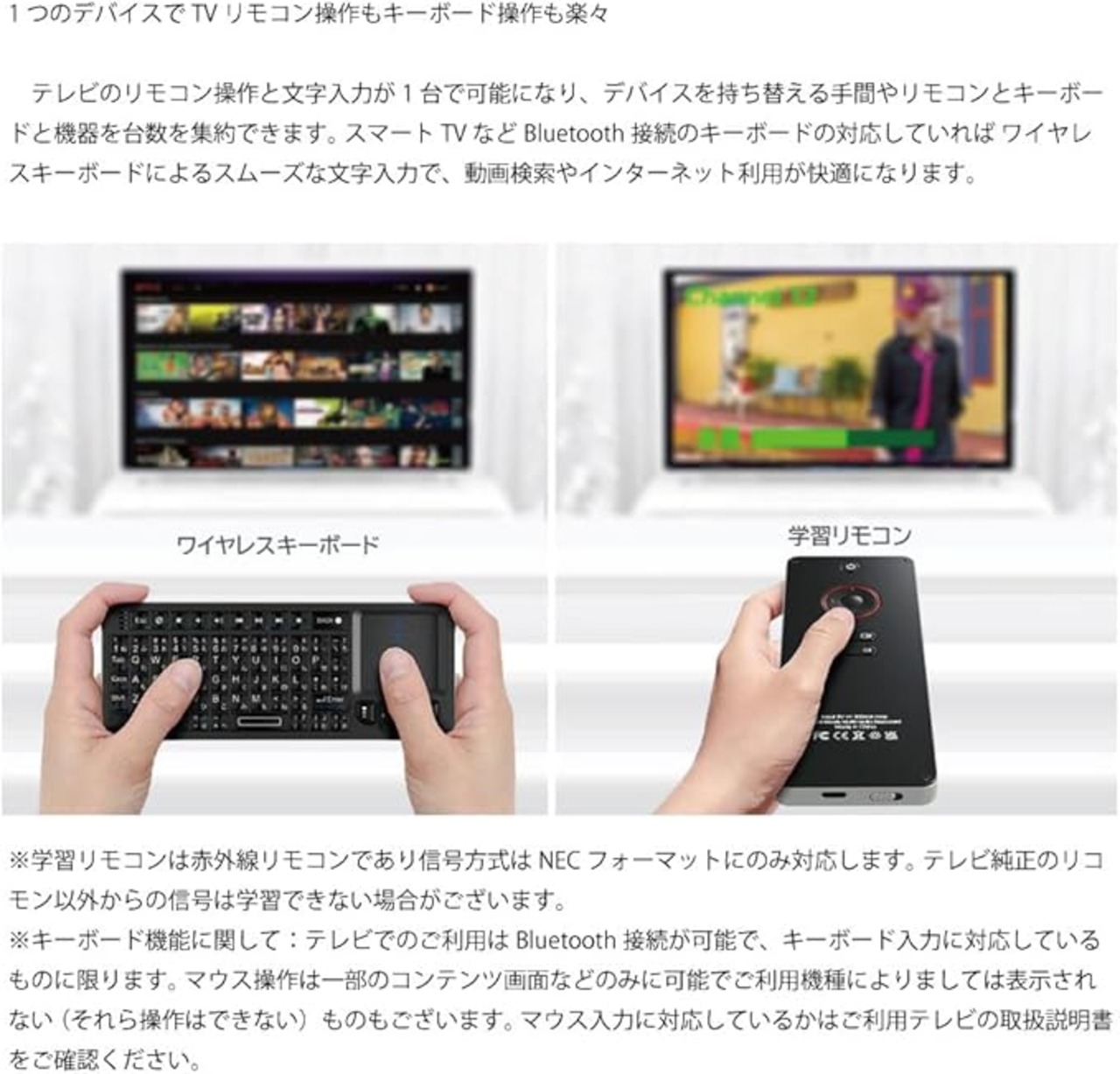 特徴 ワイヤレス, リモコン/キーボード2in1
