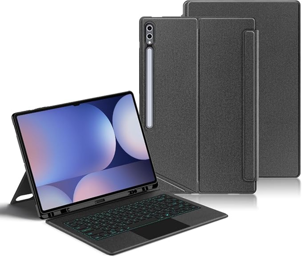 縦置き対応 Galaxy Tab S10 Utrla / Tab S9 Ultra 14.6インチ キーボード タッチパッド バックライト付き マグネット式 ケース 分離式 キーボードケース 磁気吸着 トラックパッド付き