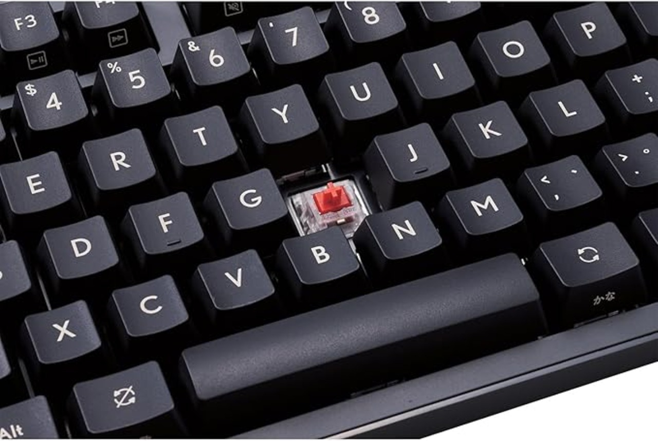 ■なめらかでソフトな感触と打鍵音の響きにくさを両立した赤軸(リニア)を搭載し、軽やかで心地よいキータッチを実現します。