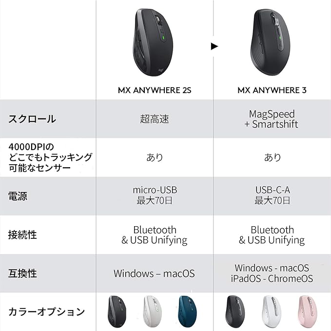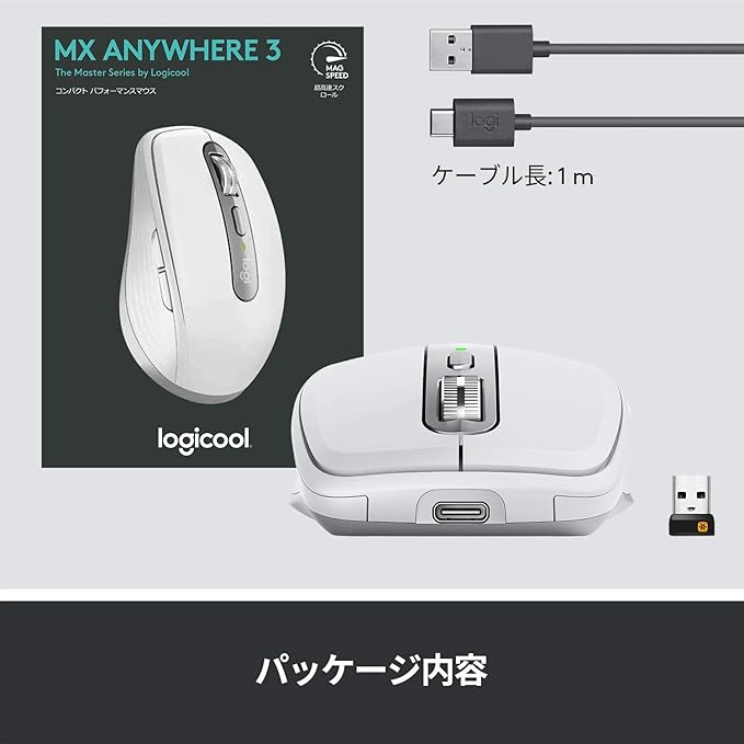 ロジクール MX ANYWHERE 3 ワイヤレス モバイルマウス MX1700PG Unifying Bluetooth 高速スクロールホイール 充電式 無線 windows mac chrome iPad OS MX1700 ペイルグレイ 国内正規品