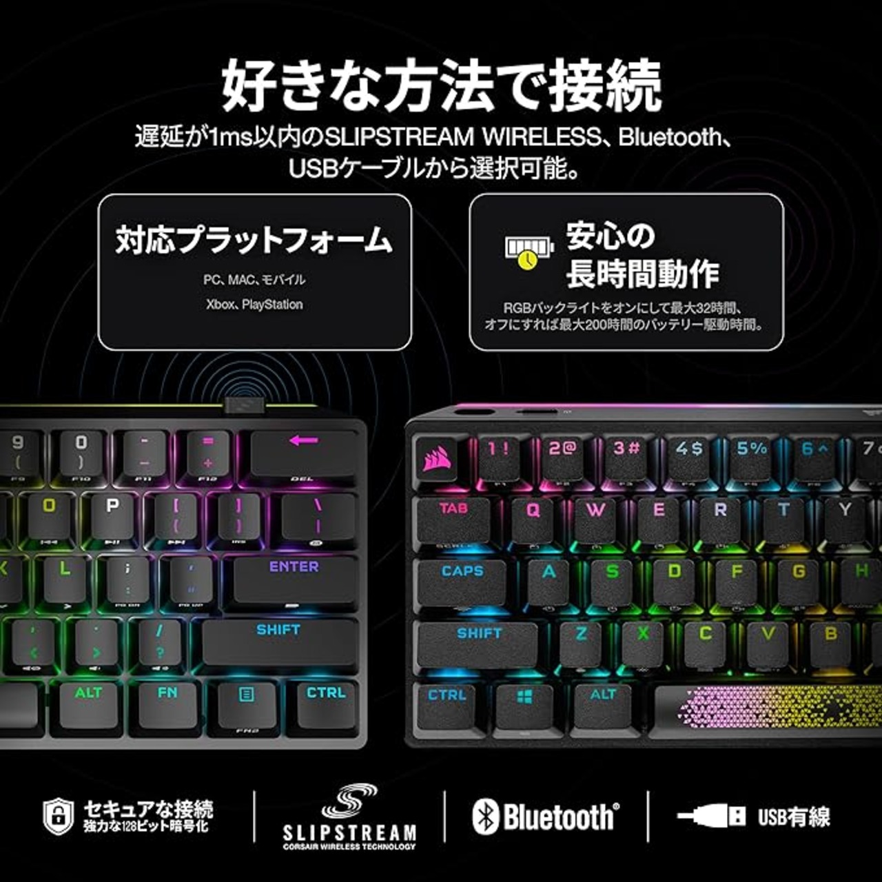 CORSAIR K70 PRO MINI RGB 60% ワイヤレスゲーミングキーボード ホットスワップキーボード ブラック MX SPEED軸 CH-9189014-JP