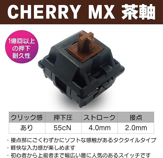キースイッチ/キー数:Cherry MX 茶軸 (tactile feel)/108キー