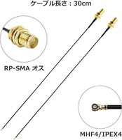 パッケージ内容:WiFiアンテナ x 2本、MHF4ケーブル x 2本。