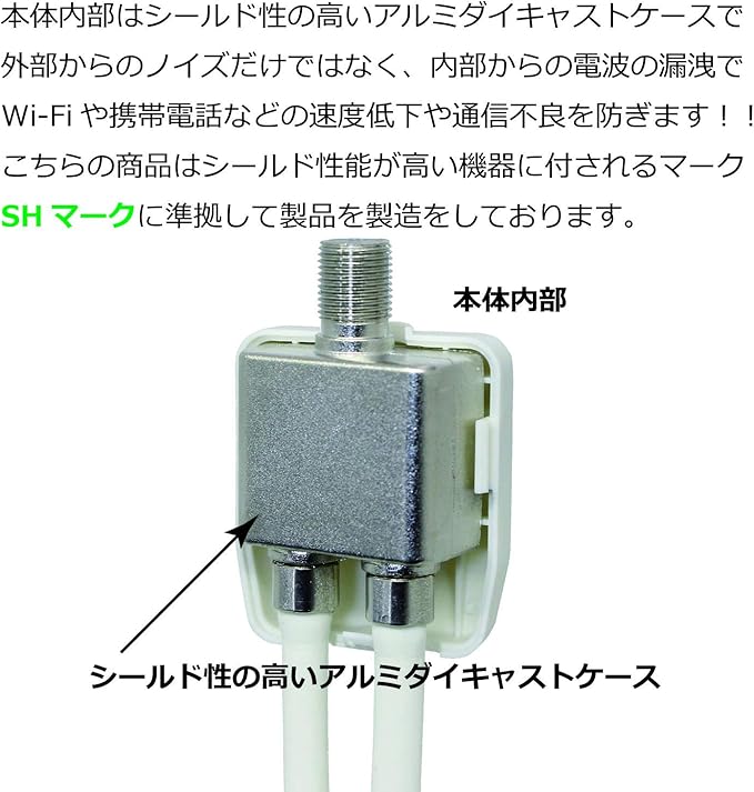 使用帯域:10MHz-3224MHz BS CS 地デジ対応 / 入力側:ネジ式F型端子 / 出力側:ネジ式F型端子 / 一年保証