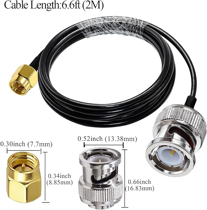ケーブルタイプと詳細: SMA から BNC 同軸ケーブル; ケーブルタイプ: RG58; 導体材質: 純銅; ケーブル長さ: 6.6 フィート (2 メートル); インピーダンス: 50 オーム、低損失
