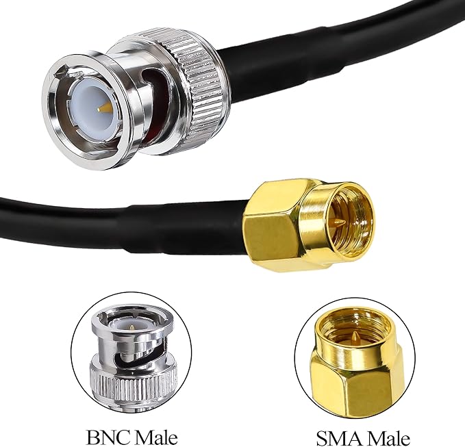 パッケージ内容: SMA オス - BNC オス RG58 延長ケーブル 1 本 (コネクタ 1: SMA オス コネクタ、コネクタ 2: BNC オス コネクタ)