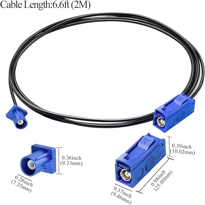 ケーブルの種類と詳細: FakraC オス - FakraC メス同軸ケーブル ケーブルの種類: RG174; 導体材質: 純銅; ケーブル長: 6.6 フィート (2 m); インピーダンス: 50 オーム、低損失