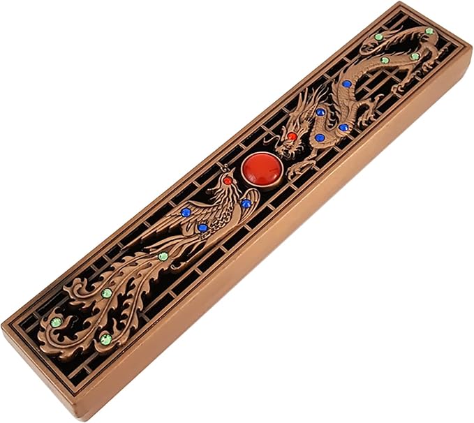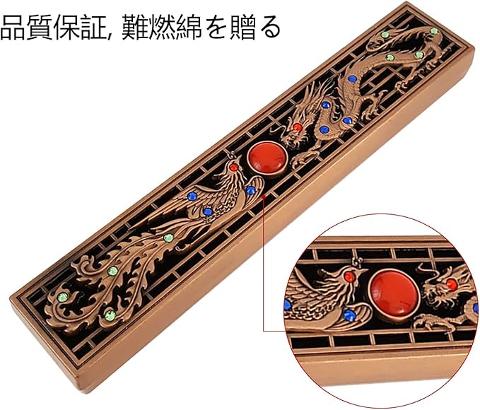 【おしゃれなデザイン 線香皿 】サイズ:14.9*2.9*1.5cm。美しい龍鳳デザイン, ダイヤモンドがついていて、とても时尚的な感じがしますされた高級感のあるおしゃれなお香立てです。横置きタイプでシンプルなデザインのため場所を選ばず、玄関、リビング、書斎などのインテリアにもぴったり合います。