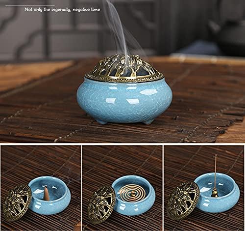 (pont du monde) 香炉 お香 線香 お香立て 陶器 アロマ 陶磁器 おしゃれ 蓋付き (薄青)