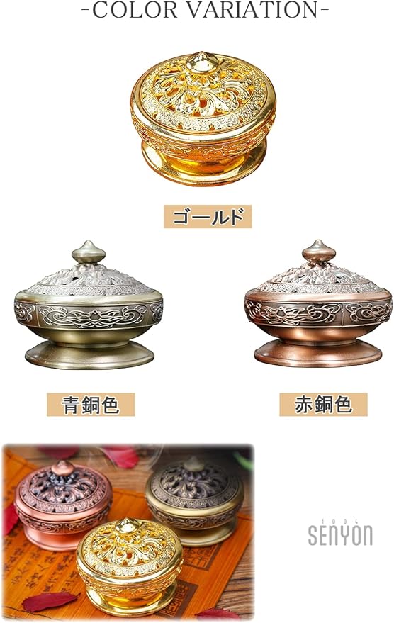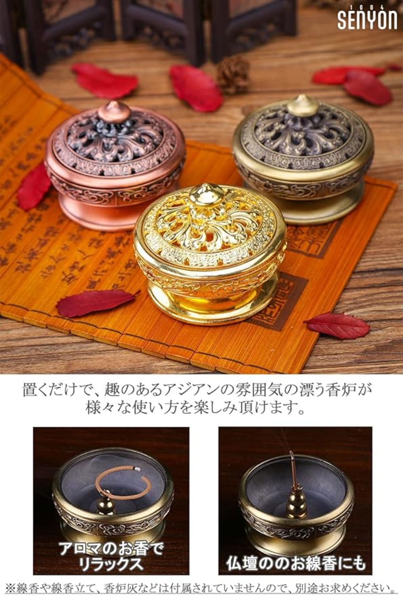 [SENYON]コンパクト お香立て 合金製 香炉 香道 アロマ (ゴールド)
