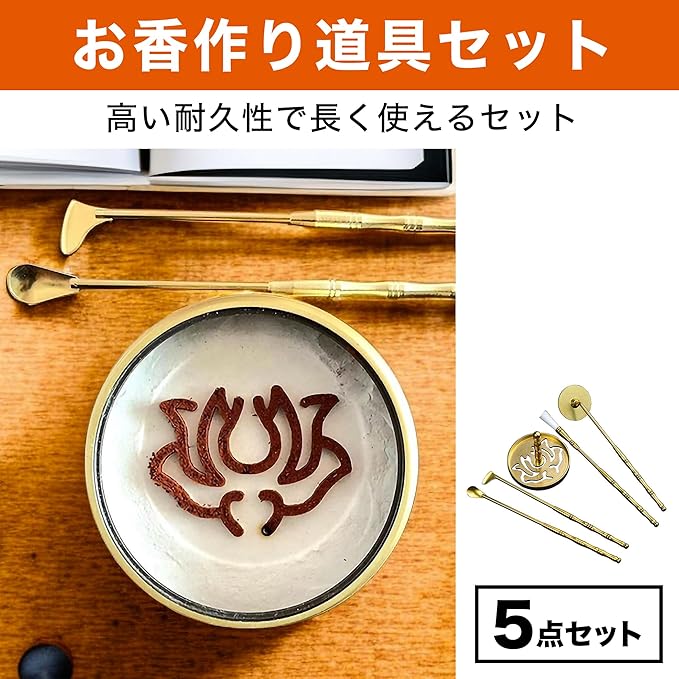 初心者のスターターキット:お香作りに必要な道具が揃っていますので、スターターキットとして役立ちます。お香作りしたことがない方でも簡単に扱えるシンプルなお香ツールです。