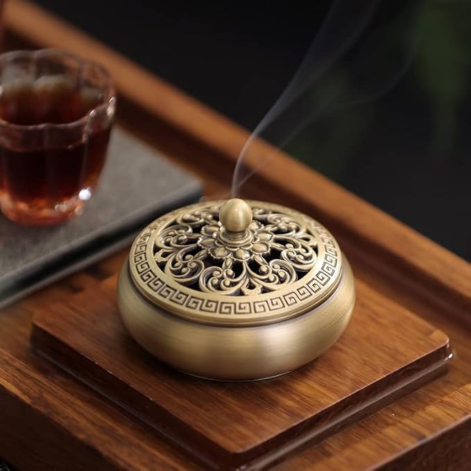 【BERESHITH】香炉 東洋風香炉 お香立て セット 蓋付き アンティーク 銅製 おしゃれ インテリア 仏具 お香立セット (小)
