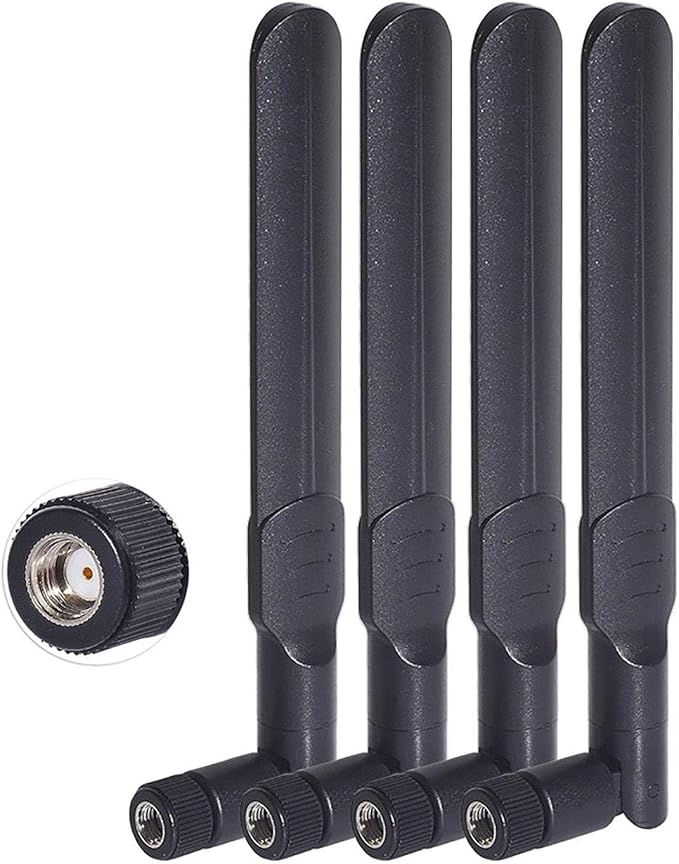 デュアルバンドWiFi:2.4GHz(2400 - 2485 MHz)、5GHz/5.8GHz(5150 - 5850 MHz)、ゲイン:8dBi、指向性:全方向性、アンテナコネクタ:RP-SMAオスコネクタ パッケージ:WiFiアンテナ 4