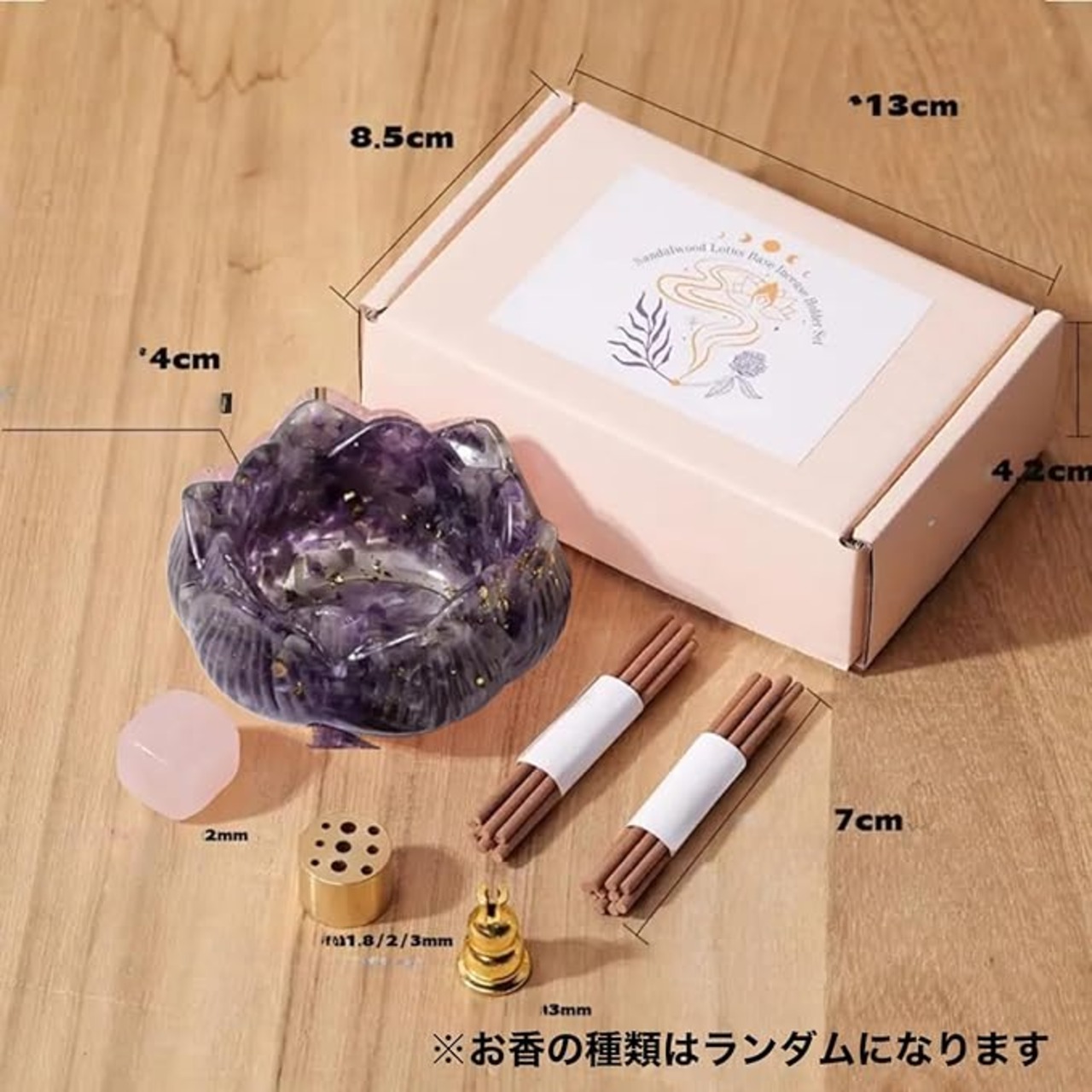 天然パワーストーン アメジスト お香立て 4点セット お香付き お部屋の浄化に 香炉 線香 浄化 皿 開運 風水 厄除け 邪気払い プレゼント 贈り物 ギフト ※お香の種類はランダムです