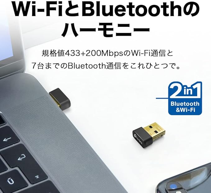 TP-Link ブルートゥース + wifi USBアダプター Bluetooth 4.2 WiFi子機 AC600 433 + 200Mbps 超小型 かんたん設定 WPA3 対応 Archer T2UB Nano/A