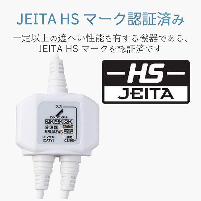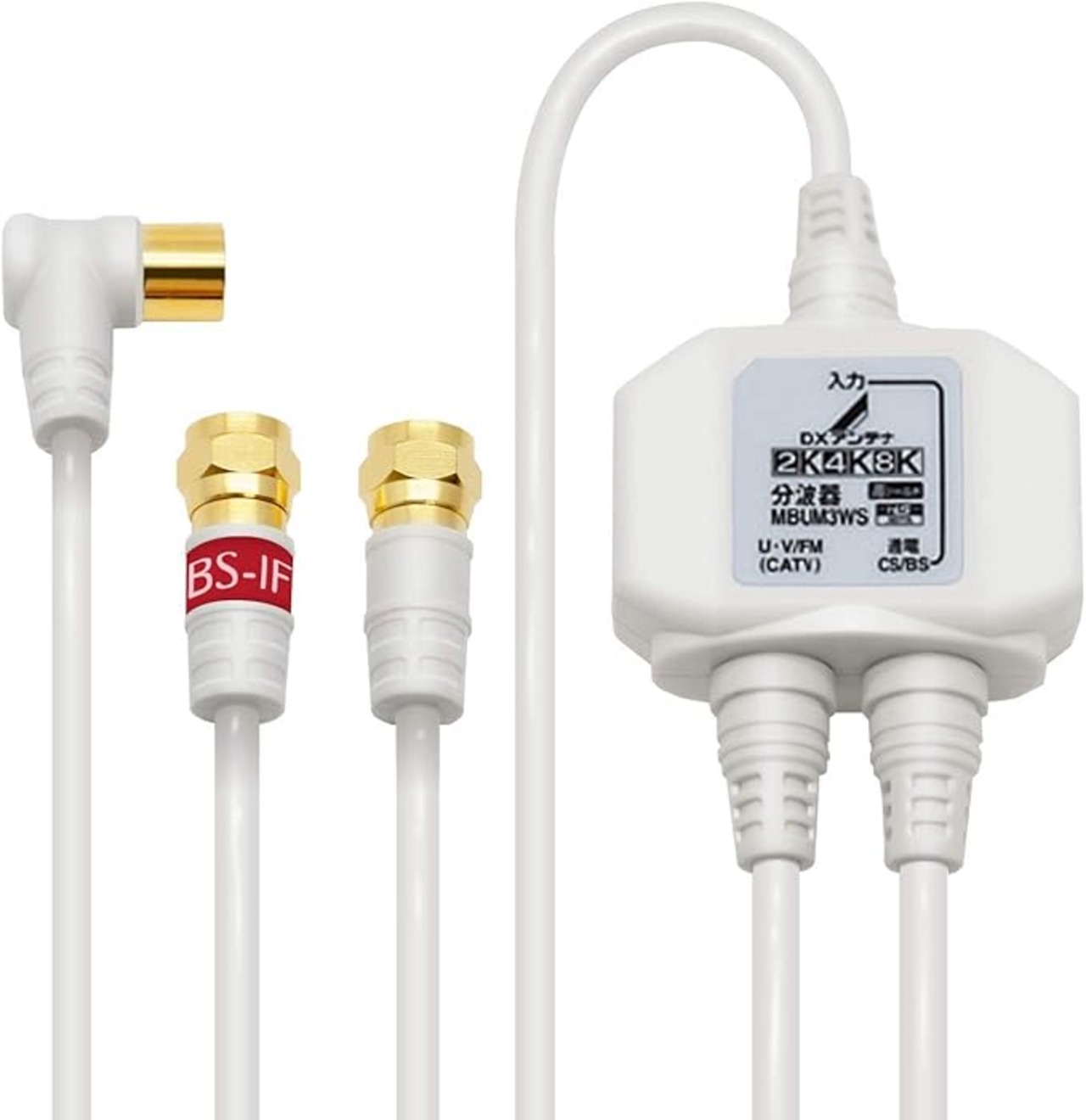 DXアンテナ 分波器 ケーブル付き [ 2K 4K 8K 対応] 金メッキプラグ 2Cケーブル 屋内用 ケーブル長 3.0m(入力)/0.5m(出力) ホワイト MBUM3WS(B)