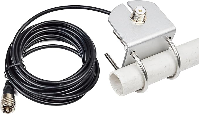 TWAYRDIO アンテナ取付金具 アルミ製 アンテナ基台 ステーブラケット アンテナマスト固定 MP-MJ型RG58同軸ケーブル付 Uボルト付 アマチュア無線アンテナ用 ベランダ手すり用 ミラーパイプ用