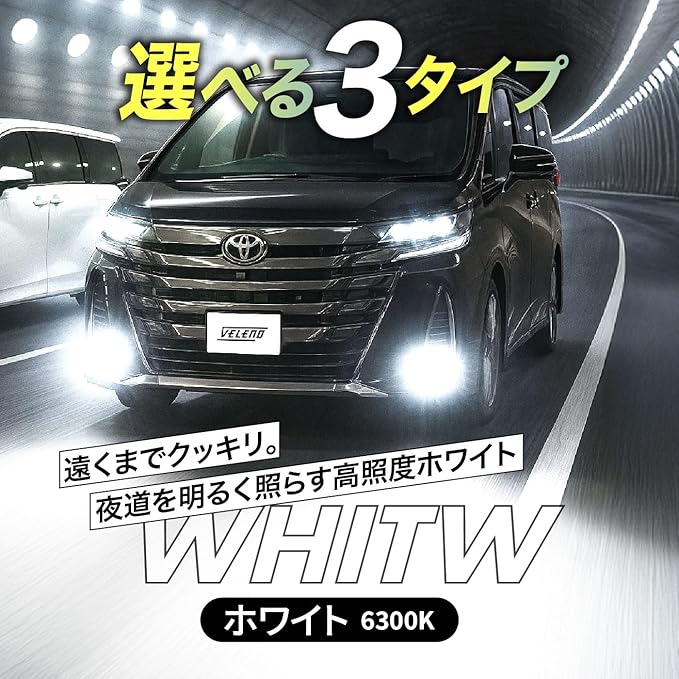 VELENO LEDフォグランプユニット Tタイプ ホワイト 爆光・ゼログレア設計 配光 高照射力 純正比24倍の明るさ 対向車に眩しくない光 アルファード ヴェルファイア 30系 対応 12V 車検対応 f042