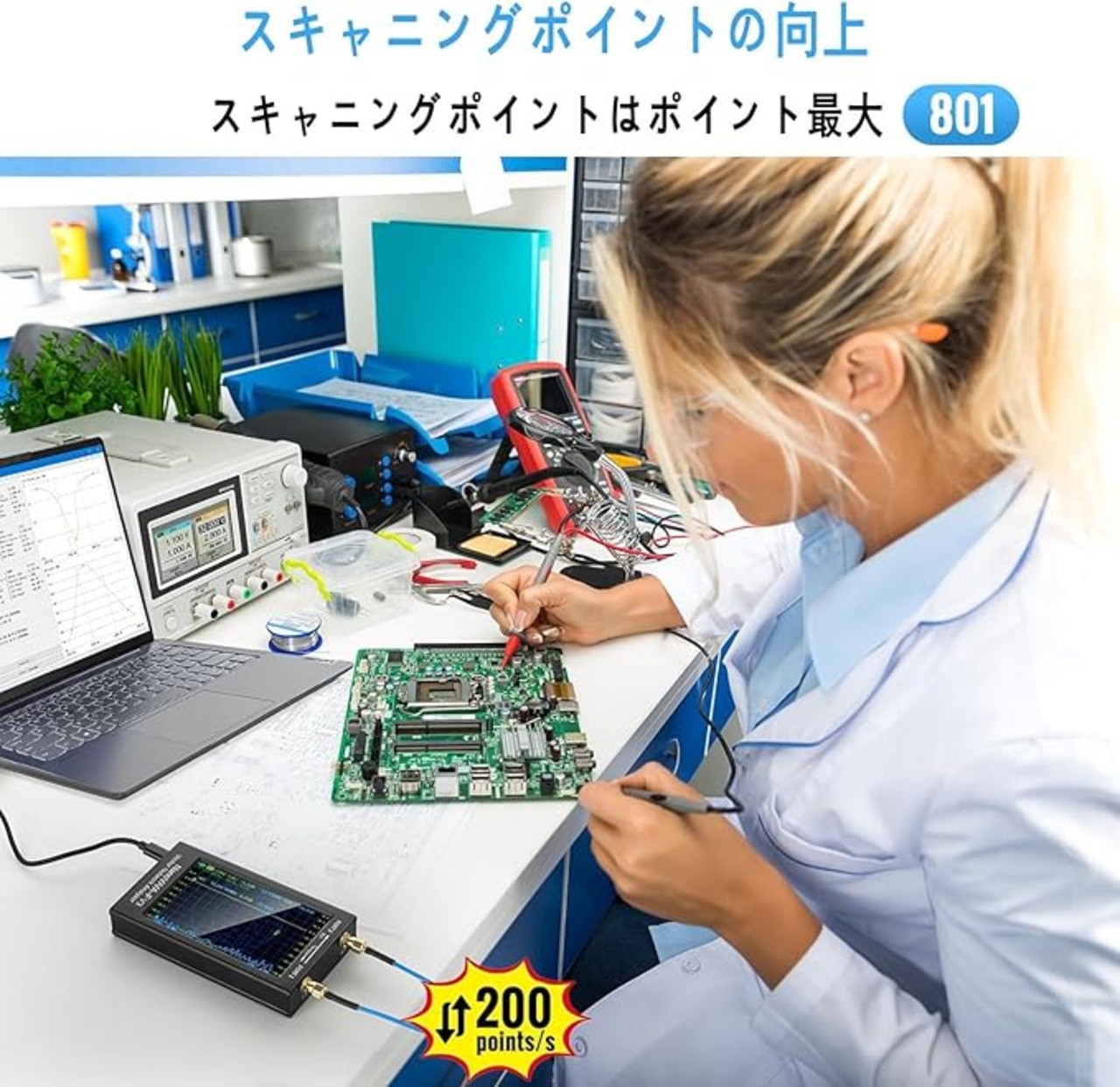 【超ワイド周波数】NanoVNA-F V3は、NanoVnA-F V2(50kHz-3GHz)に比べ、測定範囲が1MHz-6GHzに向上しました。S11とS21の測定に使用できます。NanoVNA-F V3のS21ダイナミックレンジは65 dB、S11ダイナミックレンジは50 dBです。スキャンポイントは101-801まで、校正結果の保存は12まで可能で、低周波または高周波の全レンジをカバーします。vnaアンテナ・アナライザは多用途で、より速く、より効率的な操作を提供します。