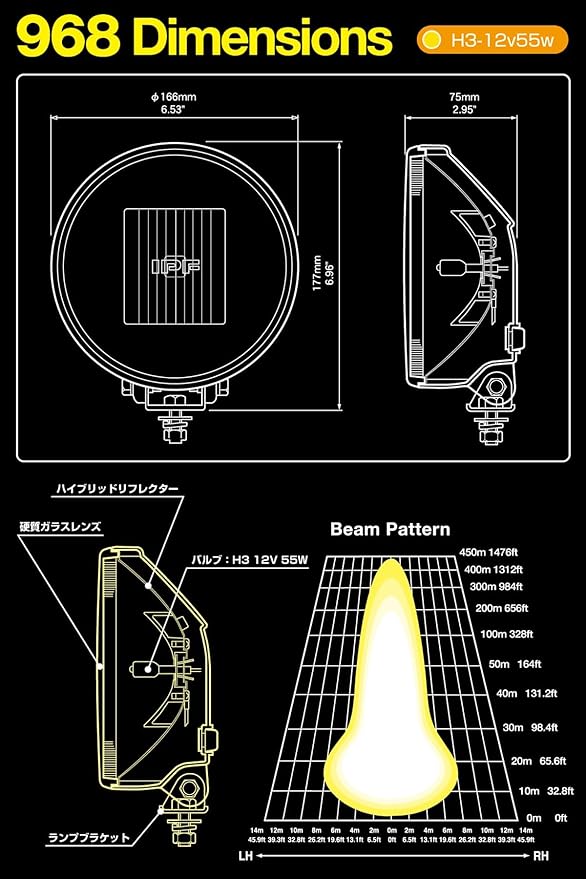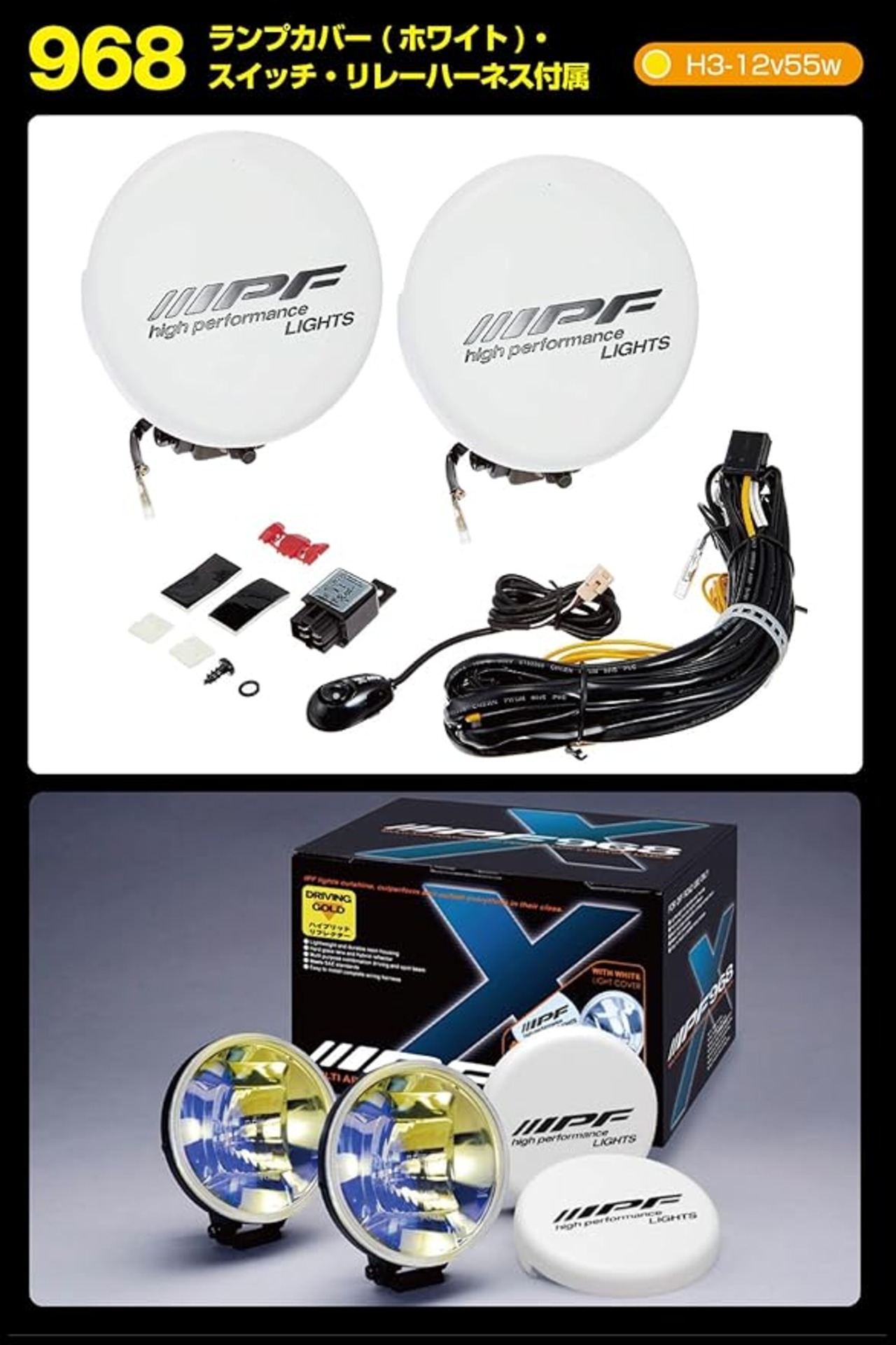 IPF フォグランプ ハロゲン H3 丸形 直径166mm イエロー 12V用 2個セット ハイブリット配光(ドライビング&スポット) ゴールドレンズ オフロード S-9681