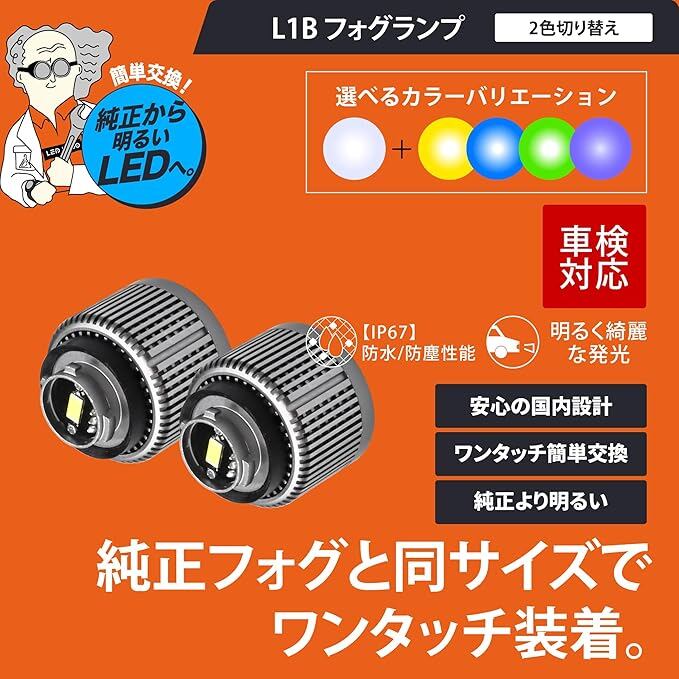 L1B LED フォグランプ ホワイト ブルー 2色 切り替え 5300lm 記憶機能 リセット 機能あり デュアルカラー バイカラー 切替 白 青 アイスブルー 新型 車両 車検対応 後付け バルブ 簡単 12v 車用