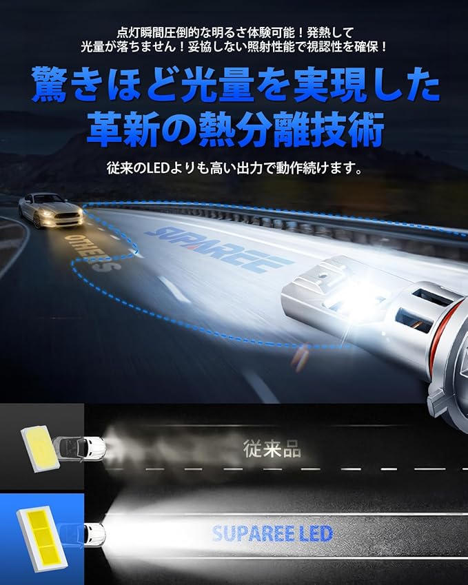 SUPAREE hb3 led ハイビーム用 車検対応 熱分離高光効LEDチップ 30000lm hb4 led フォグ 爆光 6500K ホワイト 車用 9-16V 四重放熱 静音ファン ハロゲンサイズ IP68防水