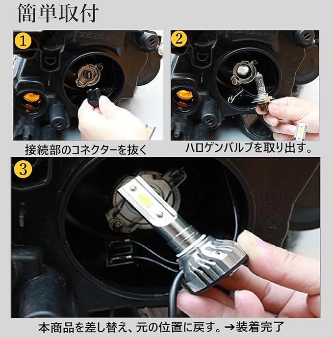 【角度調整方法】 LEDバルブを取り付けた状態で、バルブを回す事で角度調整可能! 特殊工具は必要なし!※ヘッドライ装着時にLEDバルブの角度調整をしないと発光点が合わずに光が乱反射する可能性があるため、対向車にも迷惑が掛かるので走行前に角度調整を行って下さい。
