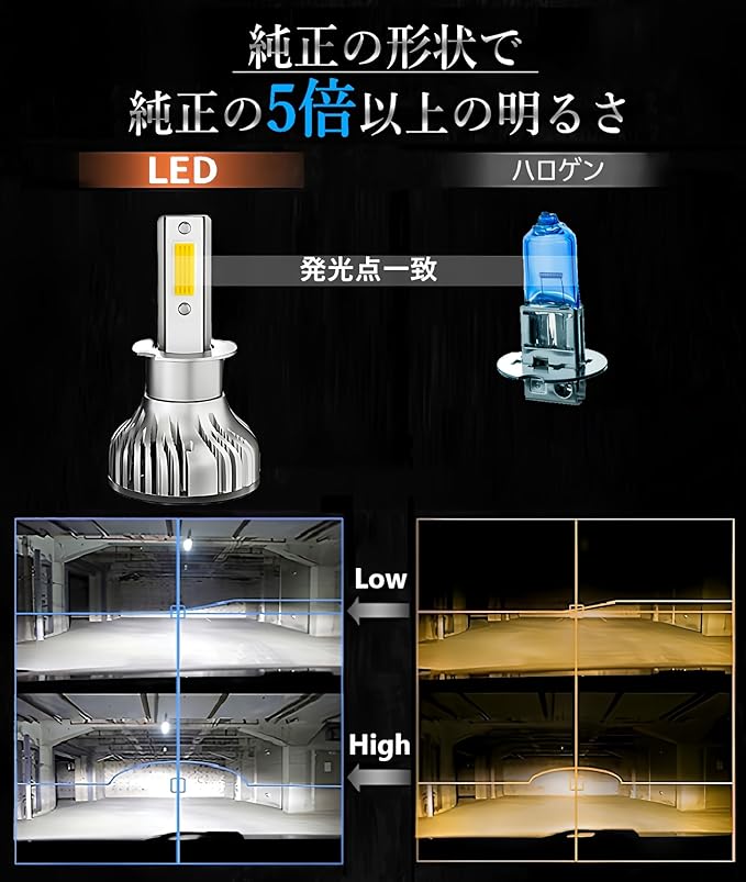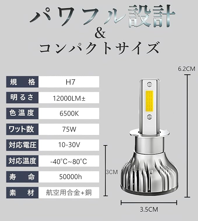 【1.2万LMを誇る強力発光】 ハイパワーモデル※片面48LEDチップ搭載! 熱対策! 放熱性の高い航空機用アルミニウム合金ボディ!圧倒的な明るさを実現し、明るさはハロゲンより8倍アップ。1.2万LMのホワイトは路面や側道の障害物を見やすくし、広く明るい視野で夜間運転の安全をサポート。省エネは55%。 省電力耐久性抜群の逸品です。純正ハロゲンランプのLED化を体験するには最適のバルブ!