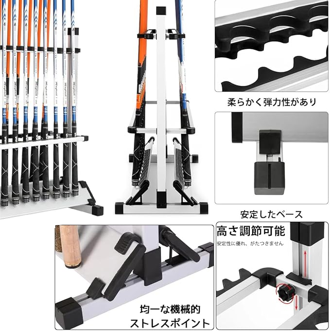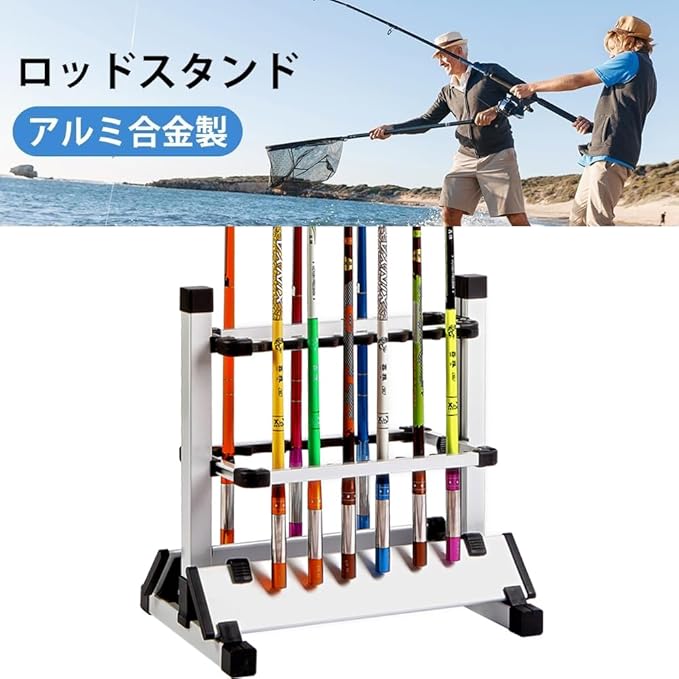 釣りスタンド ロッドスタンド 釣り竿 スタンド 竿立て アルミ合金製 釣り竿ラック ロッドホルダー さおたて 組み立て簡単 釣竿収納 展示 自家用 業務用 釣り具整理 (12本)