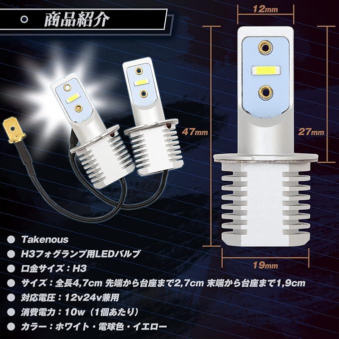 ✅【選べるカラーは2カラー】 h3 led フォグランプでは定番の【ホワイト】と【イエロー】をご用意しています。 竹村商会ではトラック野郎のご要望に応じて、h3 led フォグランプも順次カラーを増やして行く予定です。