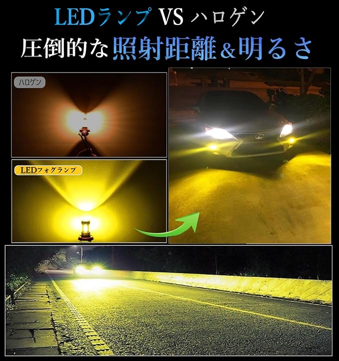 H8 H11 H16 フォグランプ 高輝度LED 車検対応 防水 爆光 無音 単色特化 2400LM イエロー 3500K 12V V24対応 70W 乗用車/トラック 汎用 2個入り (イエロー, H8/H11/H16)