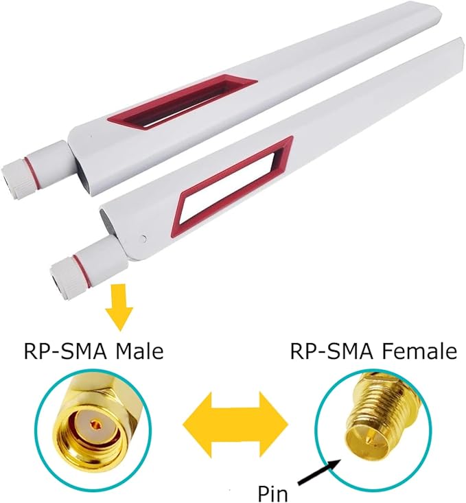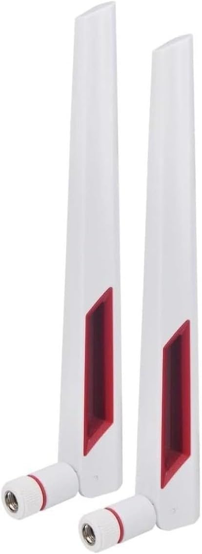 白と赤の 10dBi デュアル バンド シグナル ブースター Wi-Fi アンテナ (2.4GHz/5GHz-5.8GHz) RP-SMA オス コネクタ付き ワイヤレス カメラ、ルーター、ホットスポット用 - 2 パック