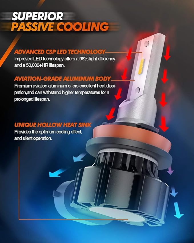 【50000時間長寿命&長期交換不要】特製アルミ合金材質を採用し、熱伝道性と耐熱性が通常の金属材質より5倍に なります。50000時間以上の長寿命でハロゲンを凌駕し、100倍以上長くなり、優れた耐久性を持っています。もし、毎日 6時間運転を使用すれば、22年間使用できます