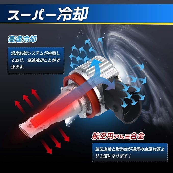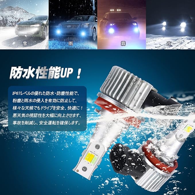 【0.1秒切替】 プラグ&プレイシステムによる自動制御、瞬間起動により僅か0.1秒で起動。HIDの3-4秒より早く、急にトンネル入っても瞬時に切替が可能です。温度検出素子がLEDの隣に配置され、動作温度を確認調整します。雨・霧・雪などの悪天候時に良好な視界を確保。
