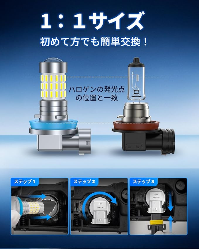 【1:1サイズ&5分で簡単取付】h11 led フォグランプは、ハロゲンと1:1で再現されたデザインを持ち、既存の取り付け部品と交換するだけで使用できますので、複雑な配線が不要で、初心者の方でも手軽に愛車のライトをアップグレード可能です。注:内蔵抵抗により、99%の車種に対応しており、一部の車種では車の電気配線上では球切れと誤検知してしまうた、警告灯/消灯/点滅現象が解消されない可能性がございます。この場合は、追加の抵抗器が必要です。