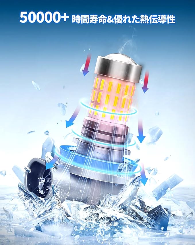 【優れた熱伝導性&より長持ち】優れた放熱システム!H11 H8 H16 LED フォグランプは、高品質素材ケースを採用し、内部には放熱板設計があり、効果的な放熱性能を実現しており、50000時間の寿命を実現しています。プロフェッショナルな熱画像検査により、優れた温度制御機能を備えて、長期間の使用でも過熱の心配がありません。より効率的なエネルギー利用が可能で、LED電球の寿命を延ばし、車両の燃費を向上させることができます。