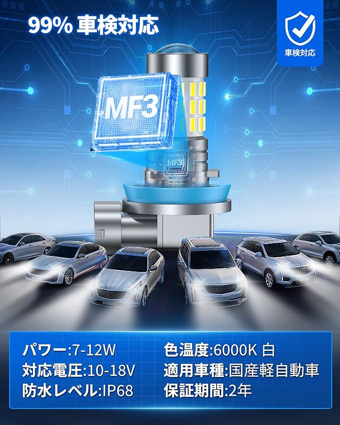 【48連超爆光!!】Marsauto h8 led フォグ 爆光 10000LM h11 led フォグランプ h16 led バルブ IP68防水 キャンセラー内蔵 6000K 車検対応 無極性 h11 h8 h16 ledフォグライト 結露対策 DC12V 50000時間以上寿命 2個入り ホワイト 2年保証(MF3シリーズ)