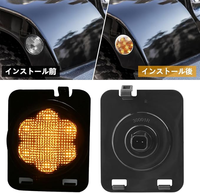 【素材仕様】ウインカーライトは8個の超高輝度 LEDビーズ + ABSプラスチックで構成されています。 IP68防水、高輝度、12V/24V、色:イエロー、寿命:50,000時間。