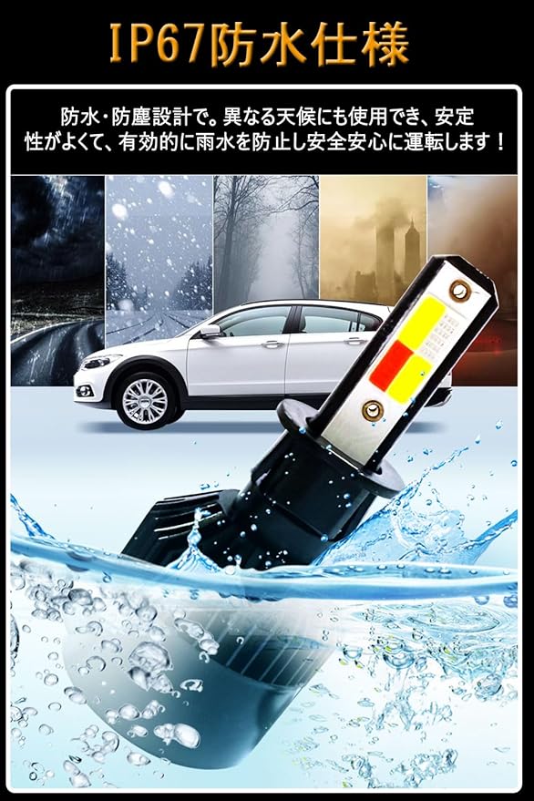 【IP67防水レベルと取付簡単】この フォグランプ led は国際標準IP67防水レベルで、雨や雪の日も心配なし。安全運転を確保し、運転者にもっと安全です。無極性タイプ、一体型の設計で体積が小さく、複雑なコネクタや配線一切無し。取り付けは純正バルブを取り外し、本製品を付けるだけ超簡単です。