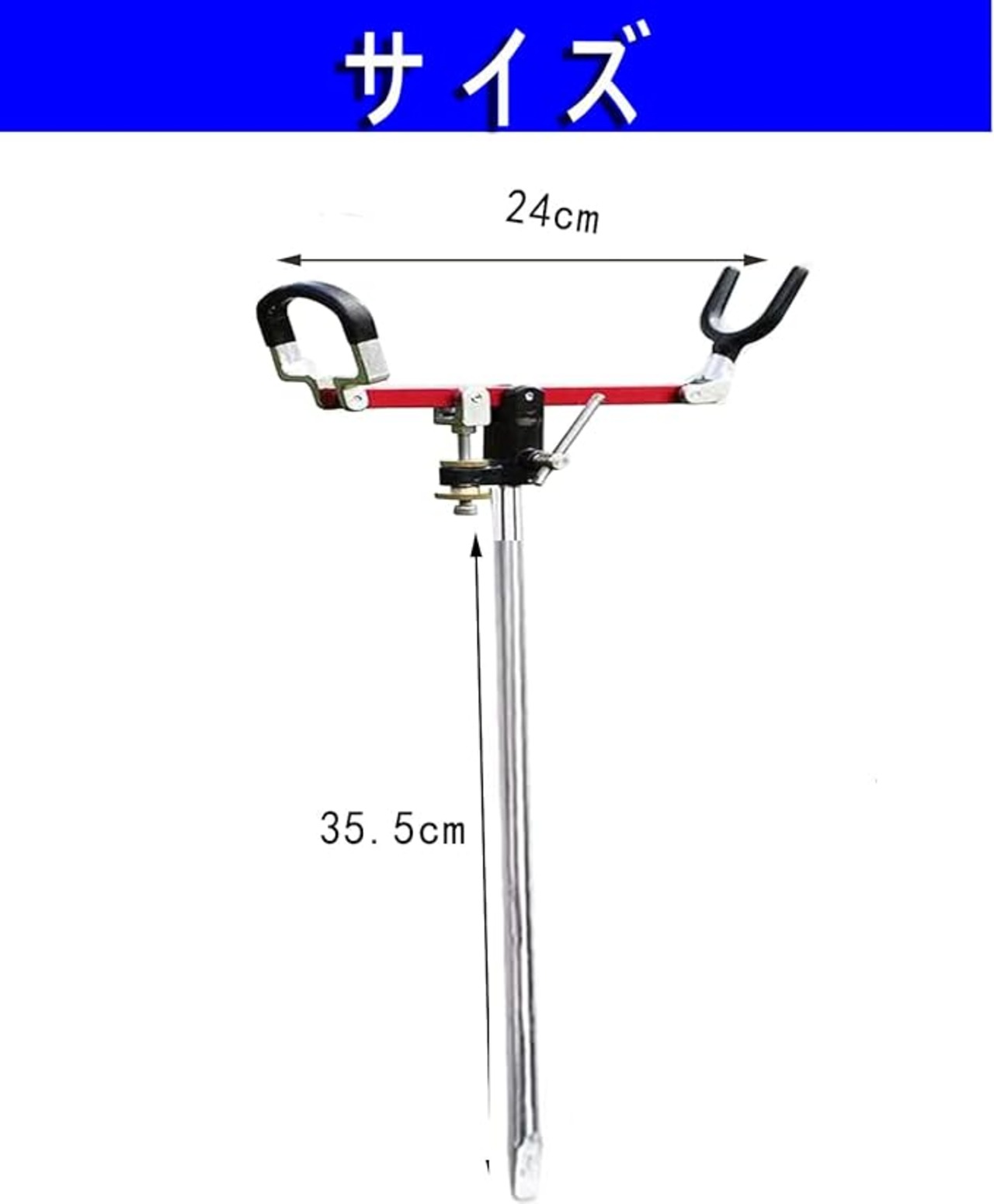 釣り竿ブラケット仕様:アルミ合金鋼釘高さ約35cm、竿置きホルダー長さ約22-26cm、幅約6.5cm