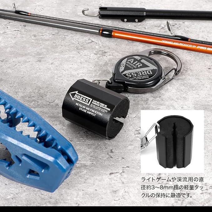 ライトゲームや渓流用の直径約8~4mm程の軽量タックルの保持に最適です。