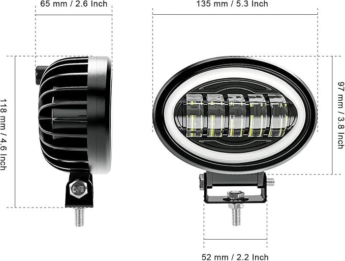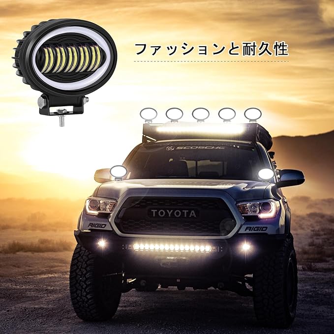 【超広角ビーム】: LED作業灯は広角ビーム120 で、ゲレンデライトよりも広く、単列デザインと滑らかな表面で風切り音を低減し、プロジェクター光学ライトカップは、光の分離の問題を解決し、光の利用を改善し、より長い範囲、より高い高さを実現します。