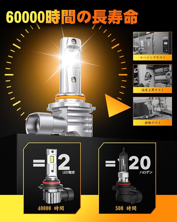 【寿命は60000時間以上】: 長寿命には効率的な冷却システムが必要です。OXILAM HB3電球は三重放熱システムを採用します。航空アルミニウムボディ、高品質の銅管と多層ヒートシンクで効果的に放熱し、ランプの寿命は60,000時間を実現します。
